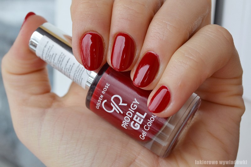 Seria Prodigy GEL to najnowsza kolekcja lakierów, które krótko mówiąc charakteryzują się wysokim połyskiem i trwałością. Swoim wyglądem mają przypominać manicure żelowy. Do wykonania manicure niezbędny jest top coat, który nadaje wysoki połysk, ale także zabezpiecza całe mani i wydłuża jego trwałość. Producent zaleca nałożenie dwóch warstw koloru, odczekać 2 minuty i następnie nałożyć top coat dołączony do zestawu. To tyle jeżeli chodzi o sprawy techniczne, teraz przejdę do koloru, który posiadam czyli 10. Mogłabym powiedzieć, że to strzał w dziesiątkę, jasny róż z nutą fioletu, przypominający kolor kwiatu wiśni. Uroczy, dziewczęcy i kryjący po dwóch warstwach. Po nałożeniu top coatu uzyskujemy niesamowity połysk. Całość po kilku minutach jest sucha i można wrócić do wcześniejszych czynności. Jestem pod ogromnym wrażeniem efektu, mogłabym spokojnie porównać do manicure hybrydowego. Powierzchnia jest gładka i błyszcząca, a także trwała. Oczywiście jak przystało na Golden Rose - niska cena, a wysoka jakość. Polecam z czystym sumieniem, kto nie wypróbował - musi to koniecznie nadrobić :)